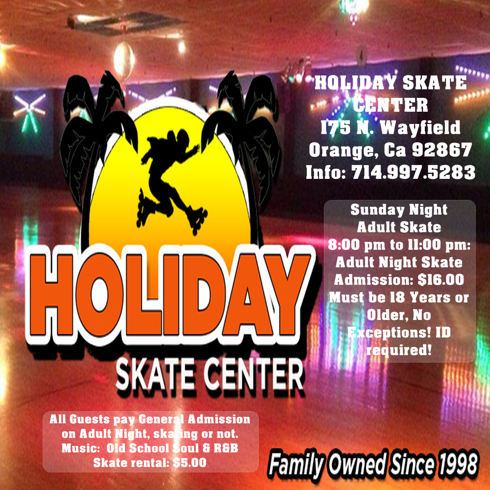 8:00 pm to 11:00 pm: Adult Night Skate Admission: $16.00 Must be 18 Years or Older, No Exceptions! ID required! All Guests pay General Admission on Adult Night, skating or not. Music: Old School Soul & R&B Skate rental: $5.00