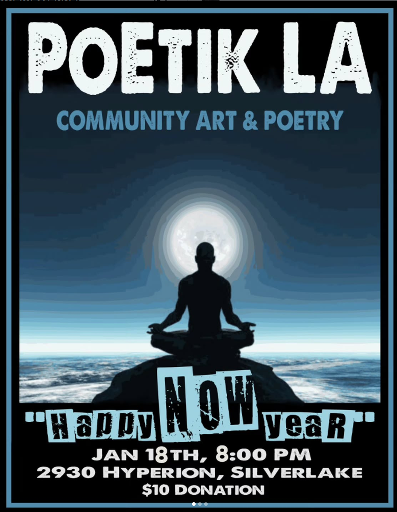 Charitable proceeds from this event support Alchemy Outreach 🙏 (ALL THEMES ARE MERELY SUGGESTIONS) PoEtik LA is an all skill level donation based event held for the community by our collective 🙌 Please DM us at @poetikla if you'd like to sign up. Sunday, Jan. 18th 8:00-10:00pm 2930 Hyperion ave. Silver lake 90027 $10 - SUGGESTED DONATION