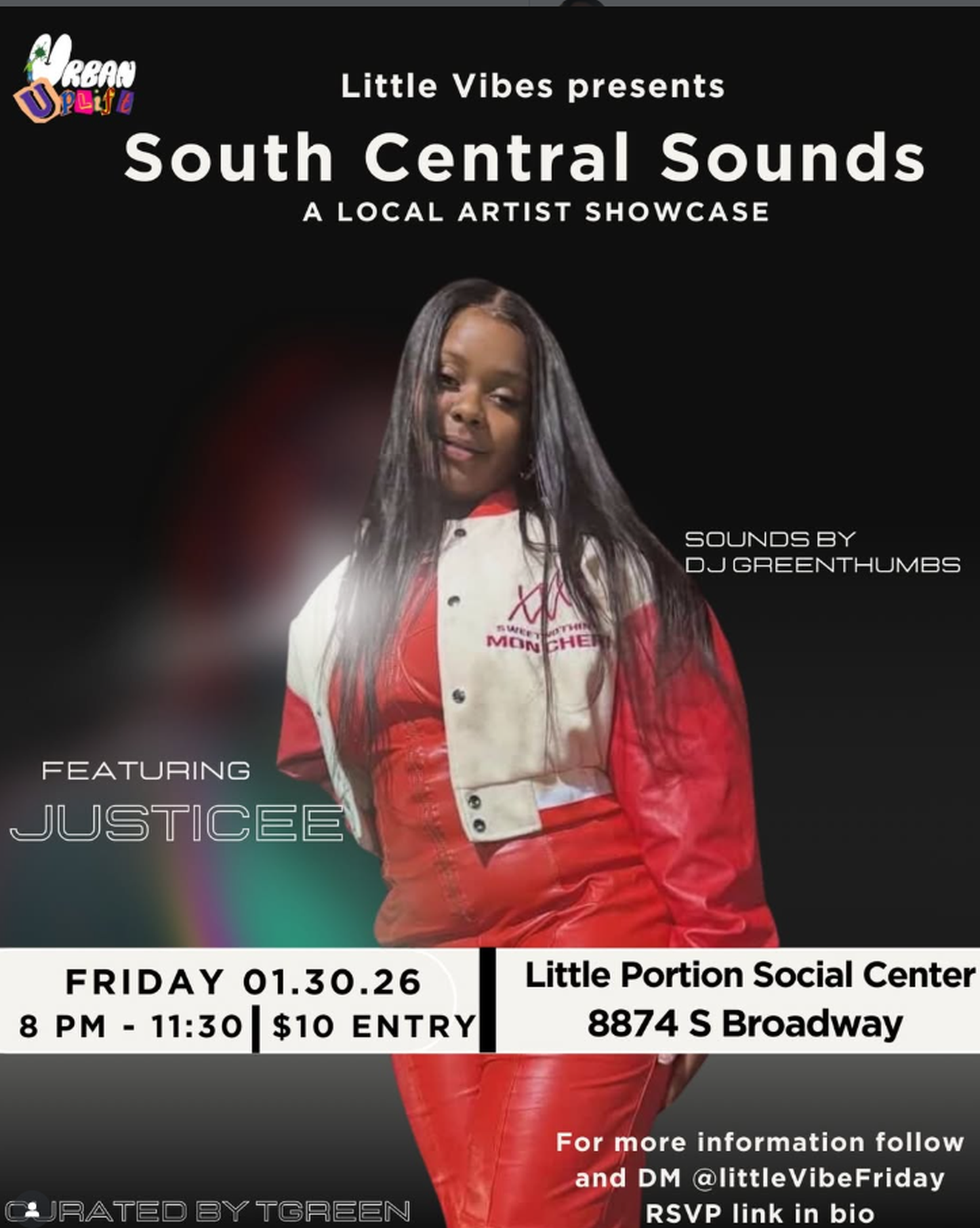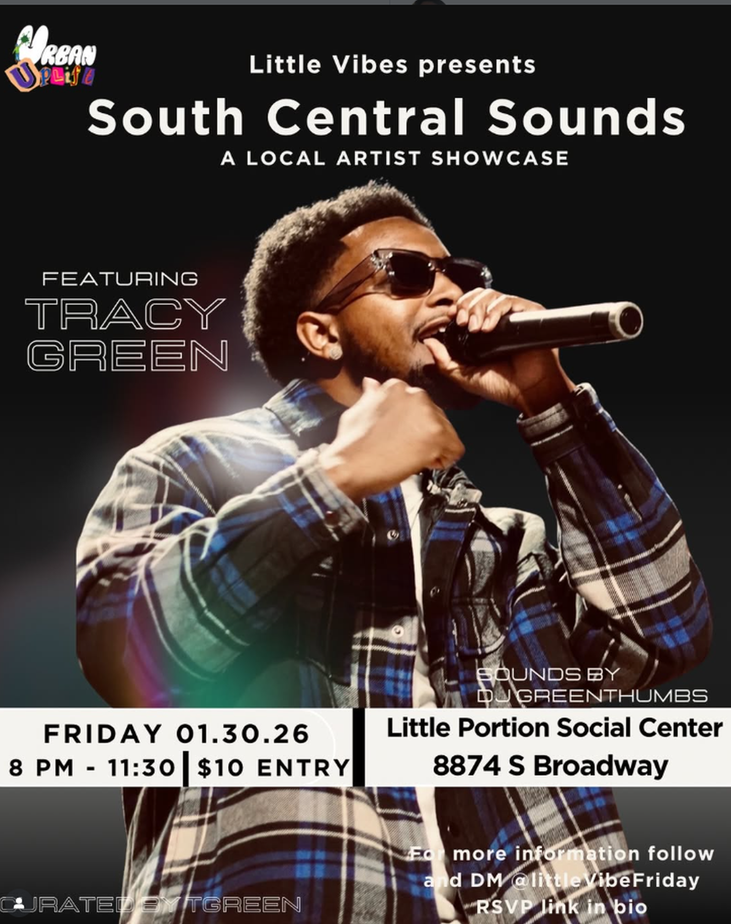 South Central Sounds is a live music night rooted in community and local artistry. This is a space for artists to share real stories and for people to show up, listen, and connect. No industry pressure. Just music and presence in the same room. Date: January 30 Doors: 8:00 PM Show starts: 9:00 PM Proceeds from the night support Urban Uplift’s community programs serving South Central LA. Come early. Stay late. Pull up with good energy.